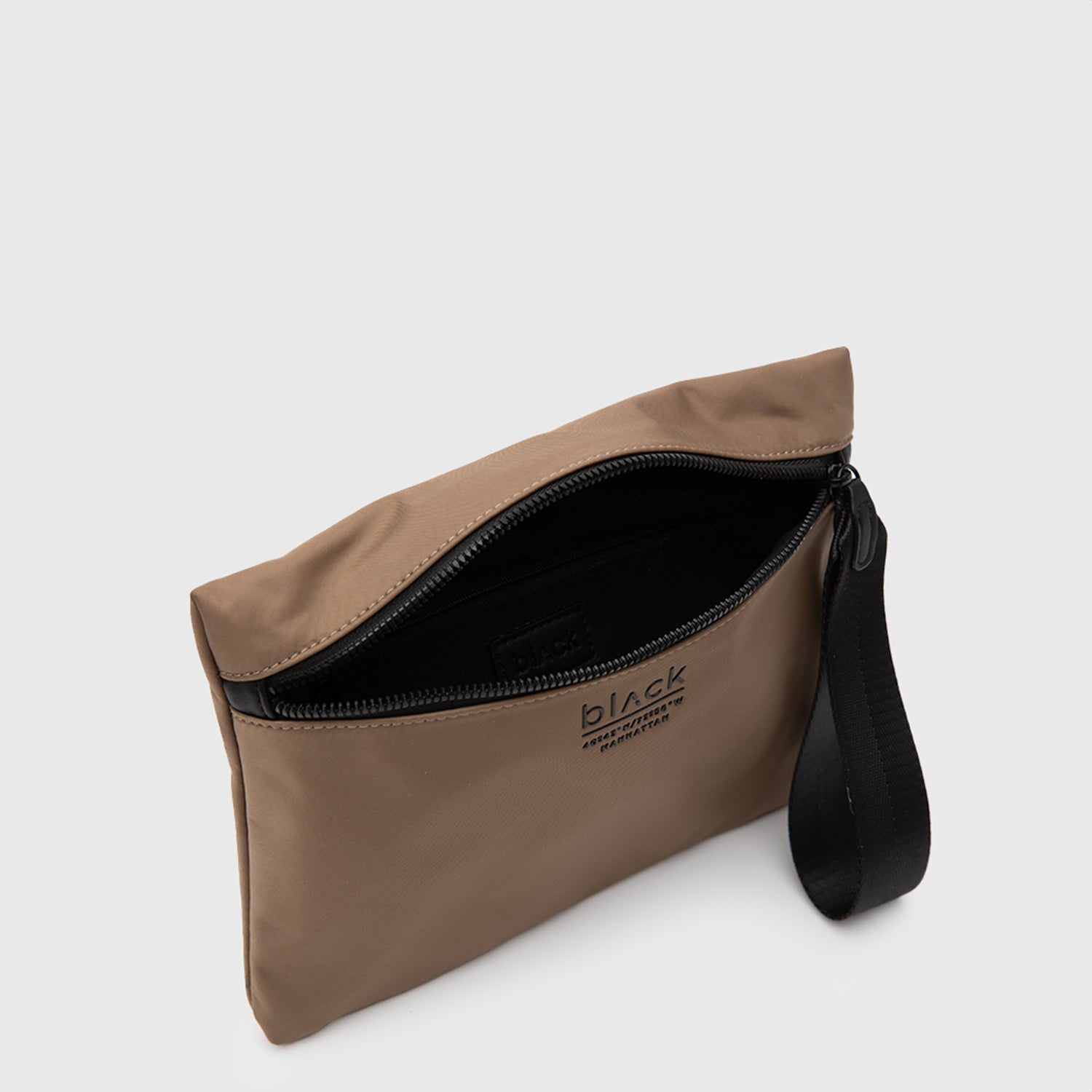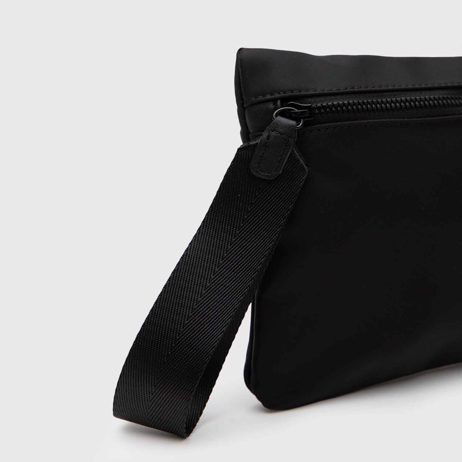 Clutch urbano con diseño minimalista en nylon. Práctico y estiloso, ideal para usar solo o dentro de tu bolso. El accesorio perfecto para mantener todo organizado con un aire moderno.
