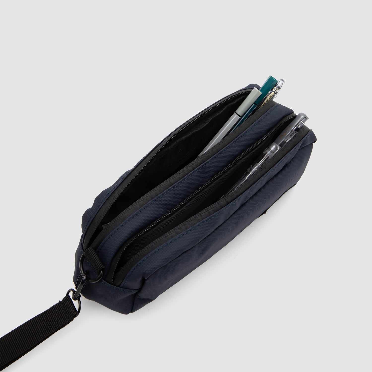 Estuche COLLINS, ideal para llevar tus esenciales de trabajo a donde quieras. Es práctico, cómodo y cuenta con dos compartimentos ideales para llevar tus lápices y esenciales organizados. Es waterproof y fácil de limpiar. Disponible en color Black y Navy.