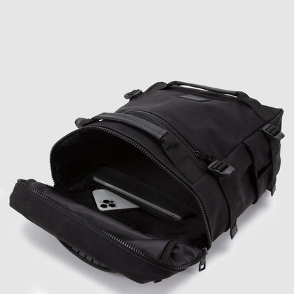 Una mochila urbana con todo el sello Black. Diseño efecto cuero, amplio compartimiento principal, bolsillo para computador de hasta 16” con protección de neopreno, espacio frontal para accesorios y bolsillos laterales para botellas. Sus tirantes acolchados con ajuste al pecho la hacen ideal para moverse en bici o a pie por la ciudad. Compacta, cómoda y con estilo.