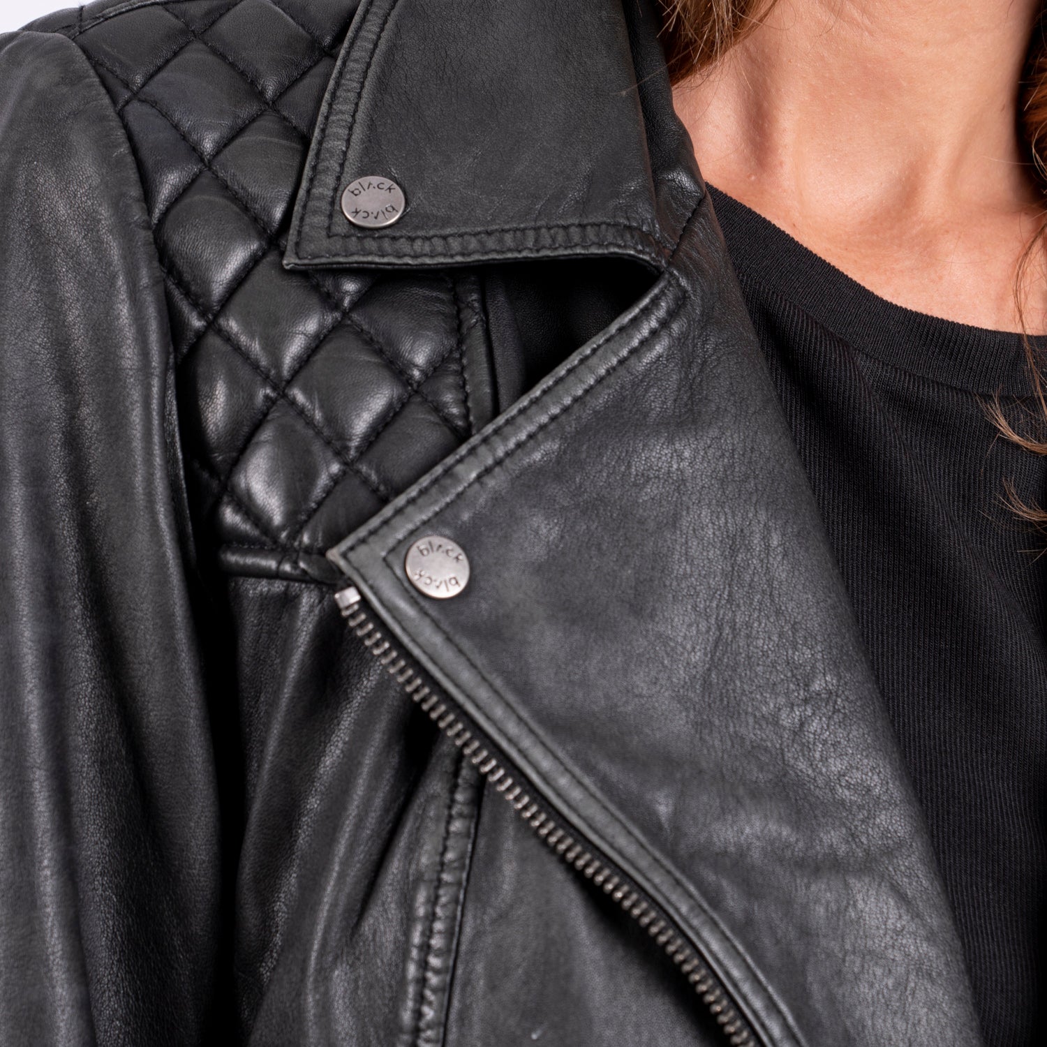 Chaqueta 100% Cuero con detalles black metalicos. Toques lavados. Ideal para toda temporada.